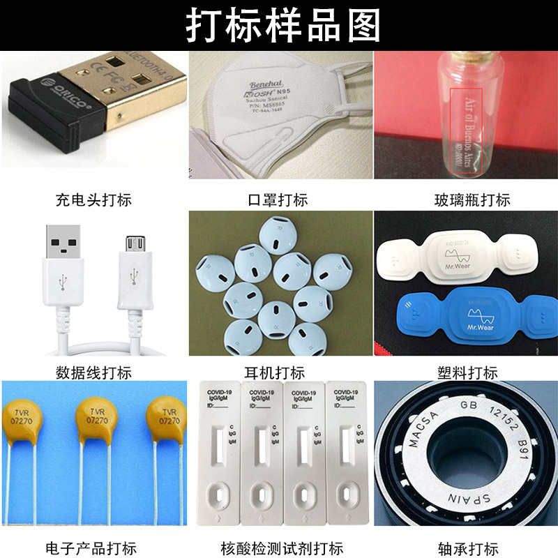 电子产品生产流水线,电子器件系列号,识别码,食品,药品化妆品生产日期打标,汽车零部件打标,其他各行业金属,非金属材料的配件及元器件打标。